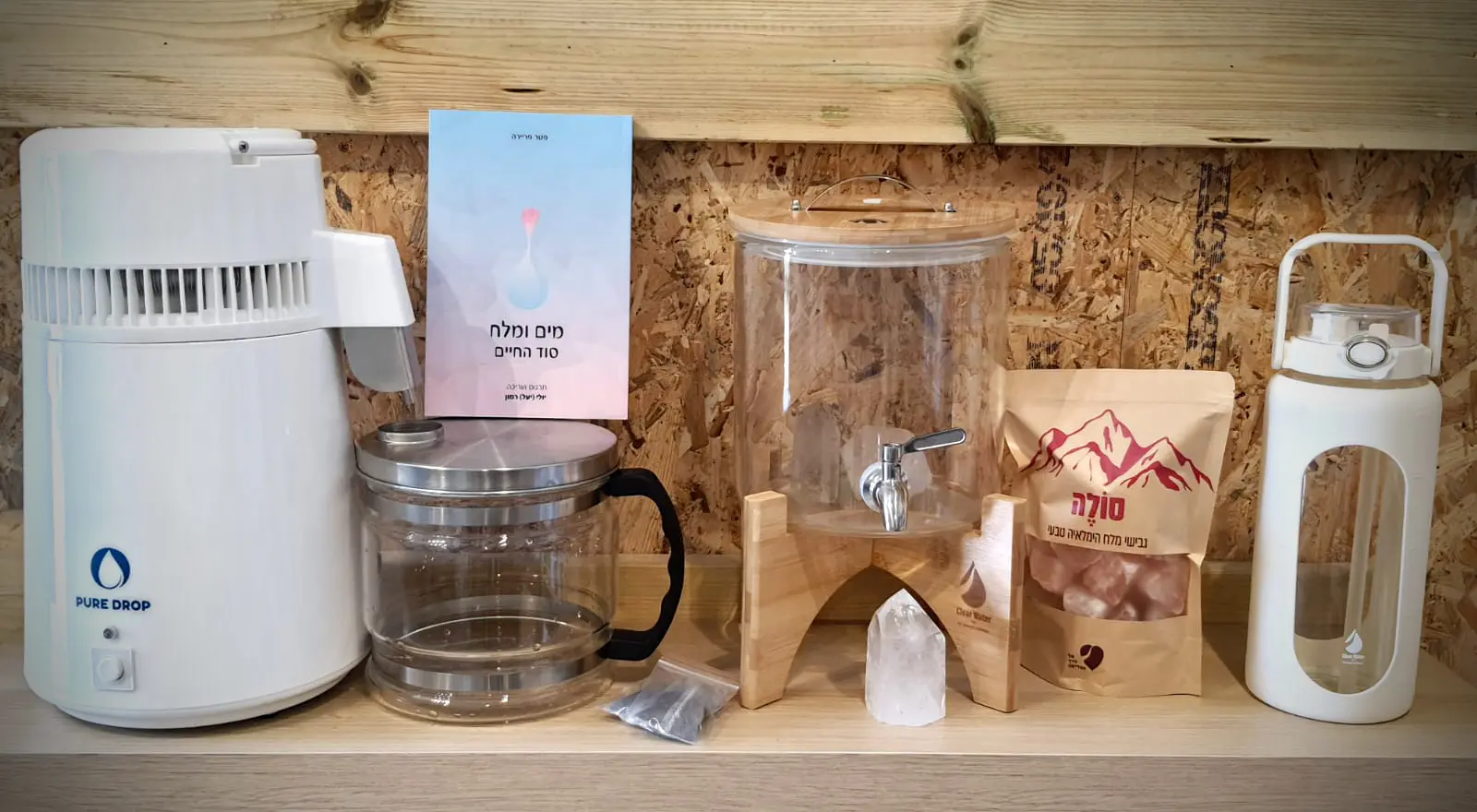 סיום ההרצאה תינתן אפשרות לרכוש את מוצרי המים המיוחדים – מזקק Pure Drop, קריסטל קוורץ טבעי, גבישי מלח הימלאיה ועוד – במחיר מיוחד לנרשמי סדנת אמחייה בלבד.